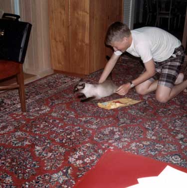 Everyone wants family pictures. To get past the usual studio shots, my mother brought out Bernice Ransom, portrait photographer of socialites, to make some of my brother and myself at our home.In her advertisements, Ransom claimed that “children…pets…home sittings…our special ‘cup of tea’!” What she didn’t tell everyone was that, with a cat, the first challenge was to get them to sit! As you can see below, it went downhill from there.