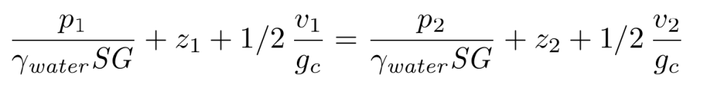 - SG = specific gravity of fluid in question