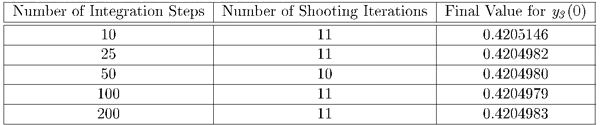 To implement this we used a same simple shooting routine with a regula falsi root-finding technique. One thing that was varied was the number of integration steps in the interval; we wanted to see how this affected the convergence.