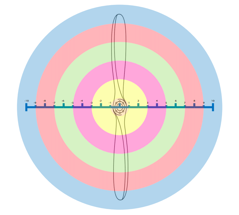 Let’s use the centimetres as an index. With apologies to my fellow FORTRAN programmers, that makes the centre index zero. Using the tall grid marks as the points where we take our data, the area of the annulus around the data point is given by the equation