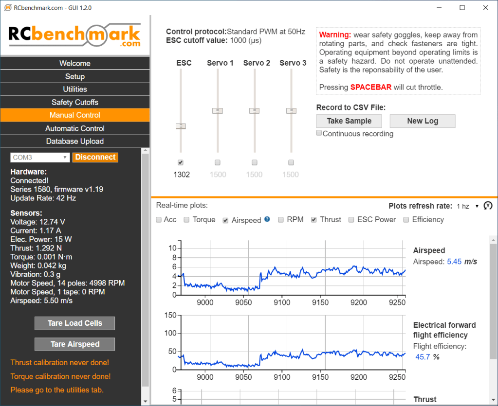 The thrusts are then summed to 1.18 N, which is within 9% of the instrumented total.