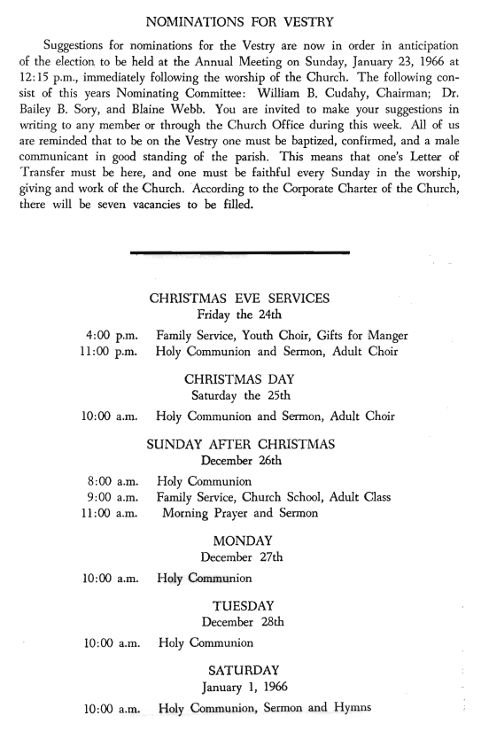 Another bulletin from Bethesda-by-the-Sea Episcopal Church, this time from 1965: