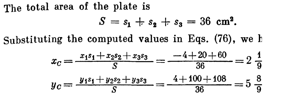 The first thing we will do is determine the centroid of the entire system. We do this by determining the centroid of each part of the section and then determining the centroid of the entire system using a weighted average. A similar procedure is employed in Determining the Eccentric Moment, Rotational Inertia and Pendulum Frequency for a Vibratory Eccentric.