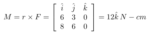 This result is identical with the above. The moment is in the z-direction and out of the x-y plane, as we would expect.