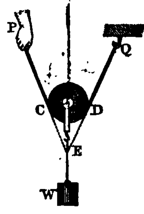 - The forces in the lines are equal because they are the same cord wrapped around the frictionless pulley. We can thus say FEP = FEQ.