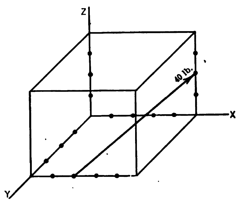The problem is illustrated above. The original problem statement asked to “Find the moment of the 40 lb. force with respect to each of the coordinate axes; each division represents 1 in.” To obtain a vector representation of the moment actually fulfils this requirement.
